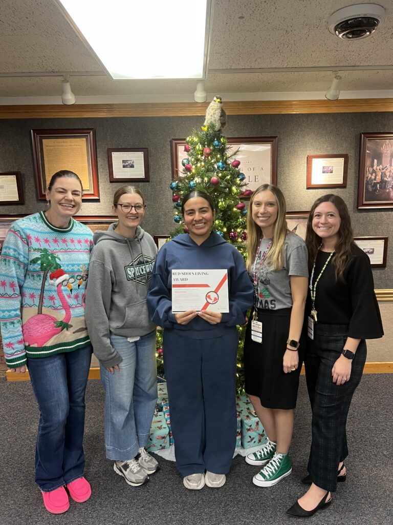 Yesterday, we celebrated one of Sprucewood’s finest staff members – Mariana Regla , MTSS Assistant, for our weekly Red Shoes Living Award. Mariana was nominated for the Red Shoes Living Award by Principal Lennox & Assistant Principal Livingston and Madeleine Homer, Social Worker at Sprucewood.